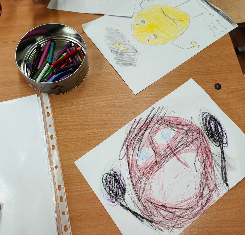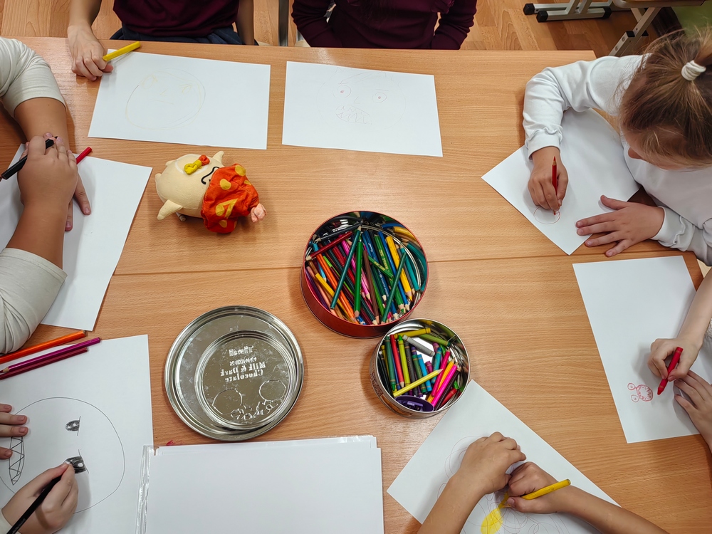 Арт-терапевтическая игра, где дети исследуют эмоции через рисунок и движение.