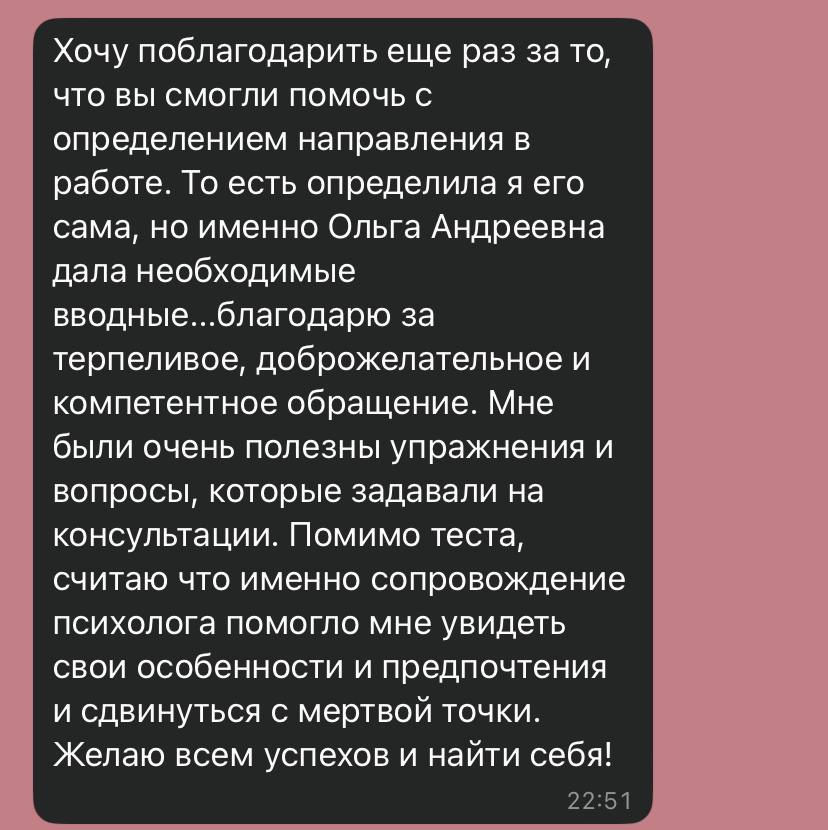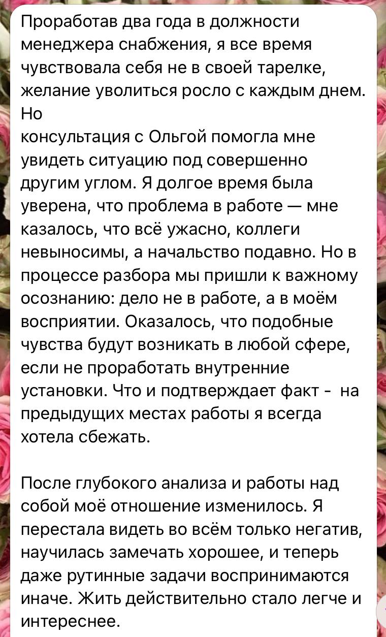 Результаты работы Ольги в отзывах: